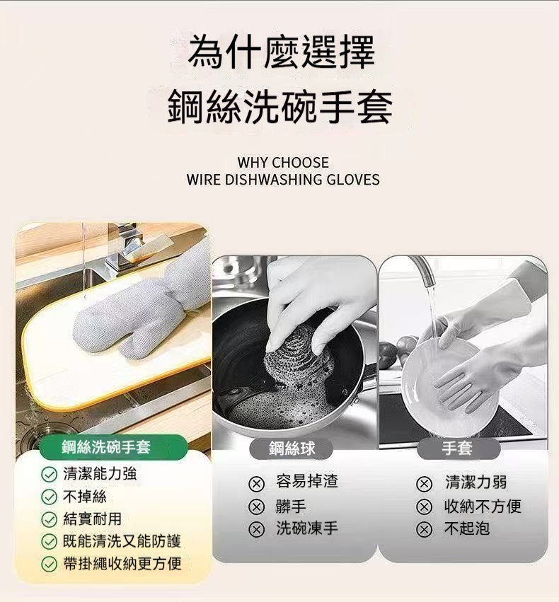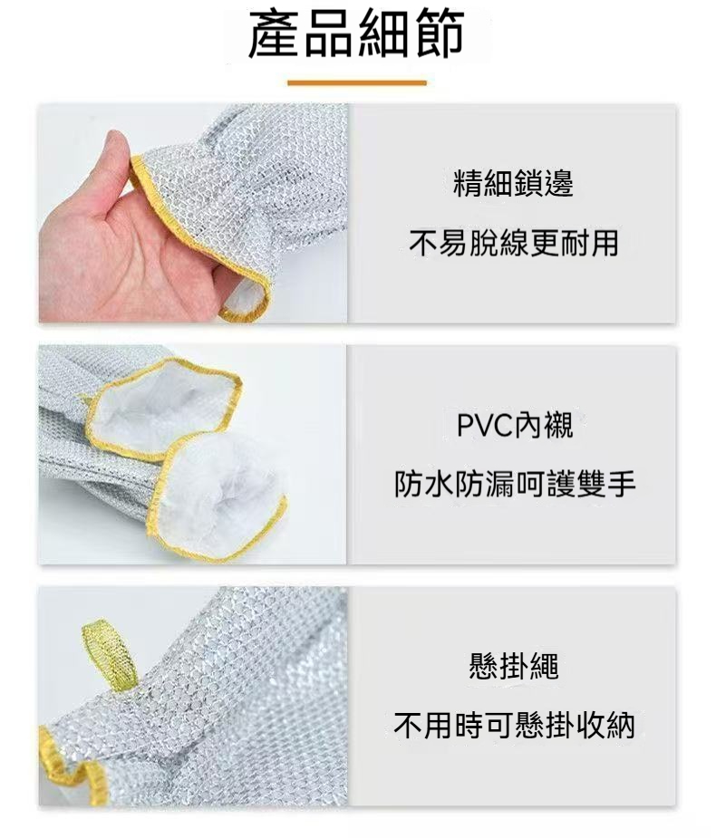 【洗碗神器】銀絲去污手套✅防水防漏不沾油✅刷鍋洗盤擦檯面一雙搞定✅耐磨耐熱呵護雙手