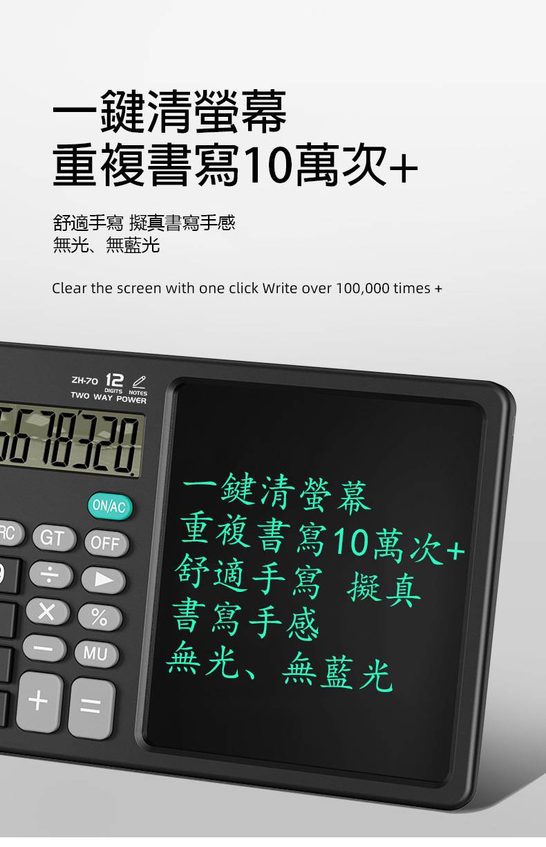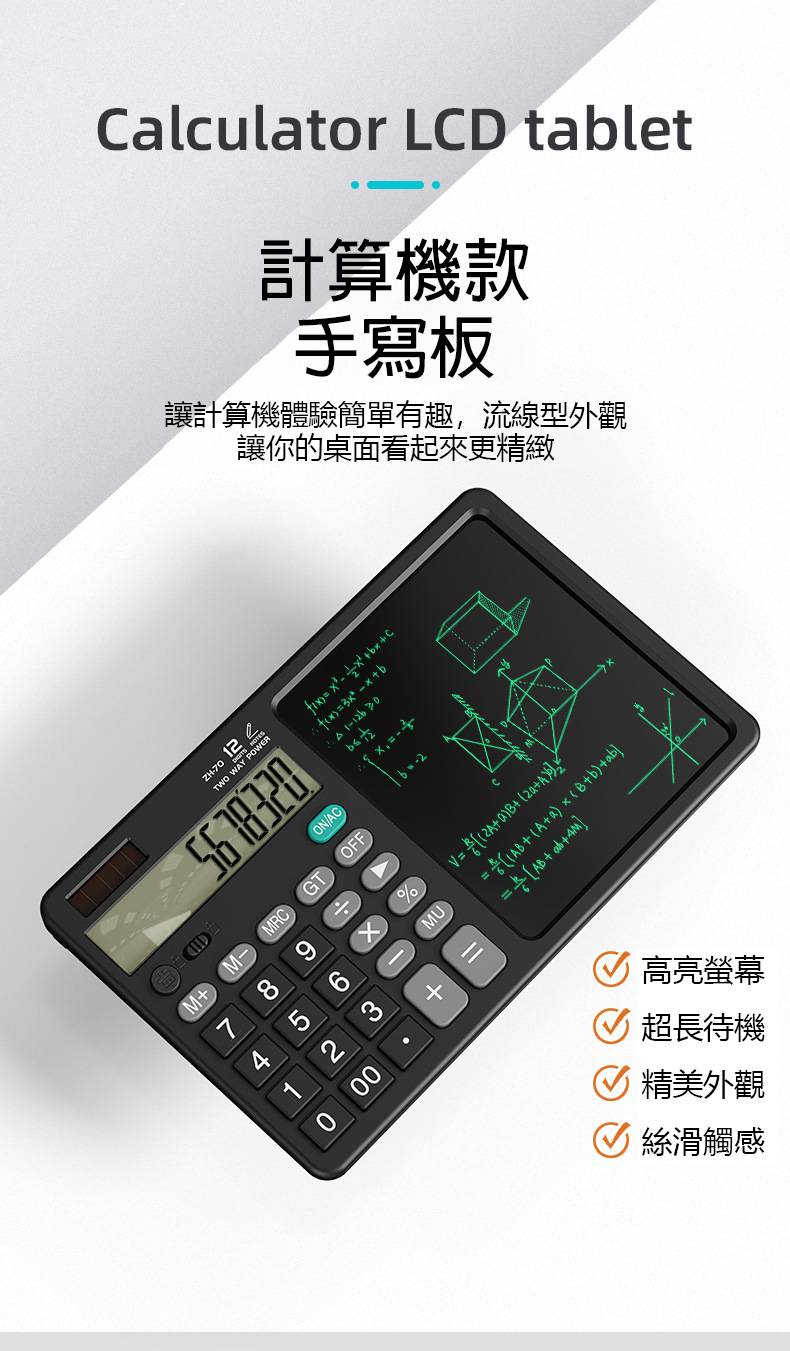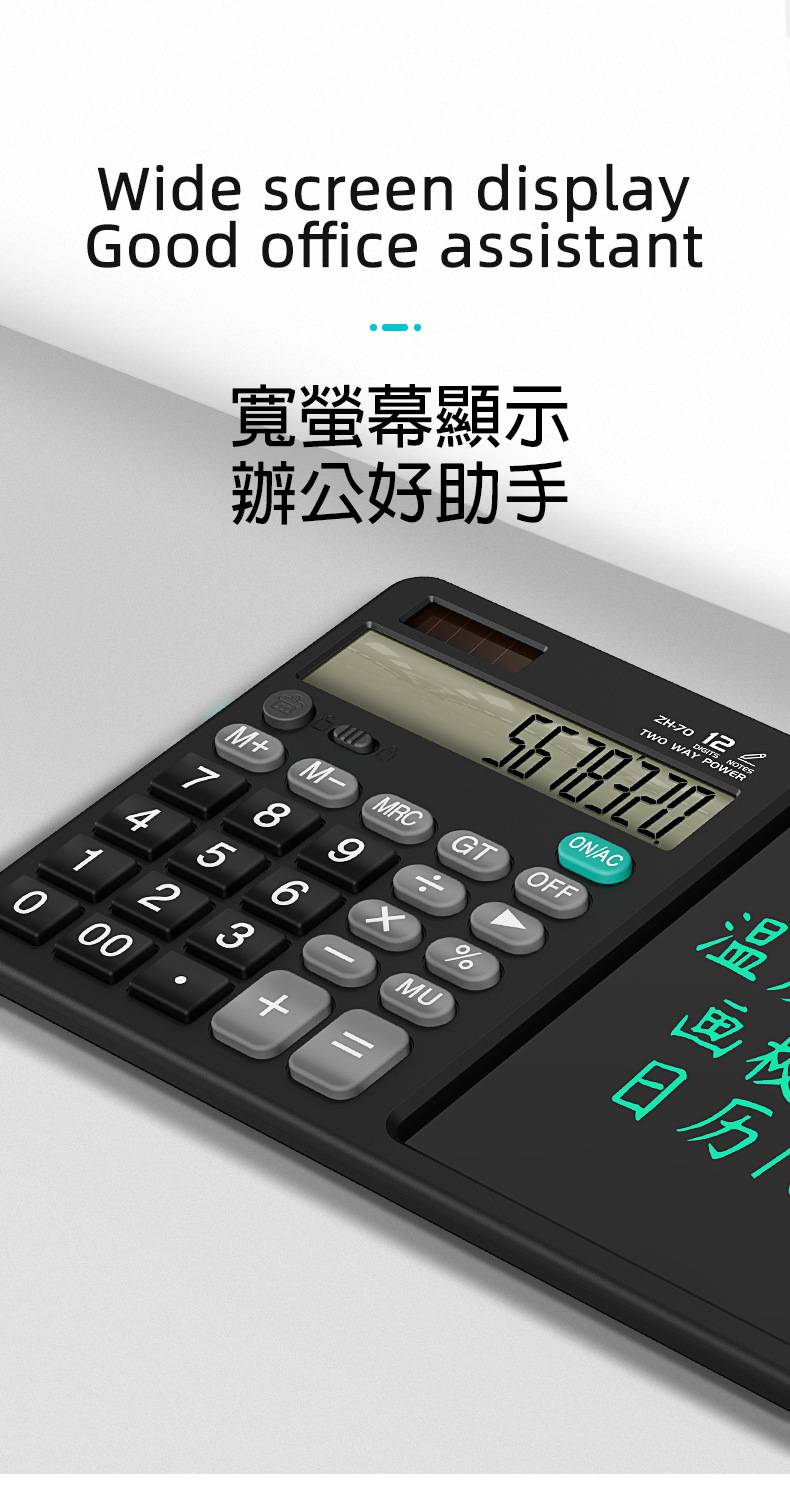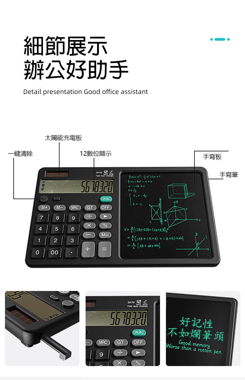 【手寫板計算機】桌面太亂還老找不到紙?換這款手寫板計算機!一鍵清除即時紀錄不殘留,千分位分隔更好讀;太陽能充電+電池備用,長時間運算也穩,記帳核對、報表出單更有效率!