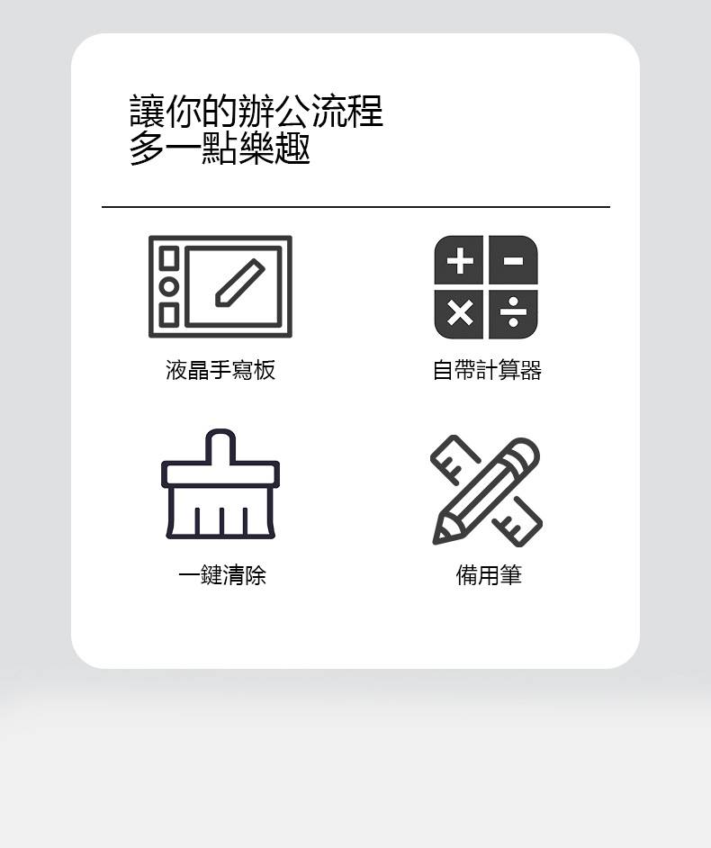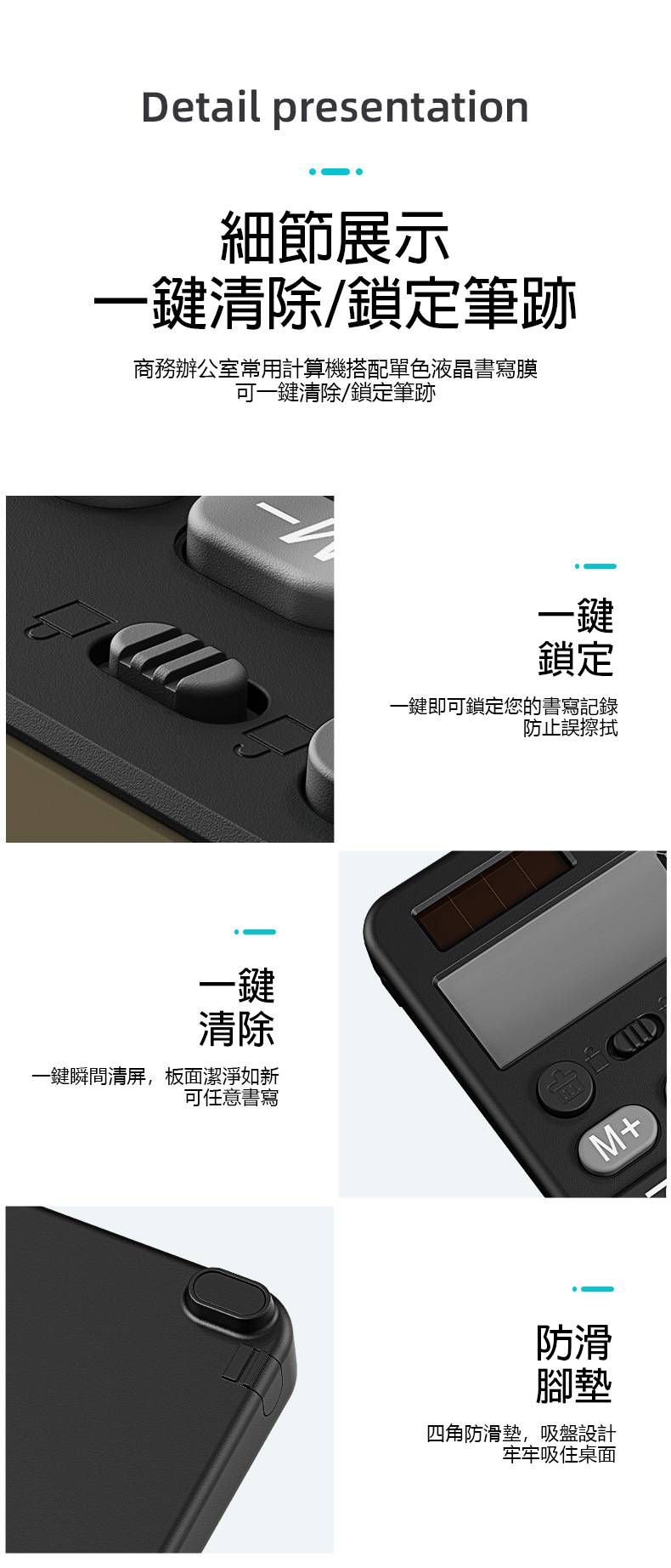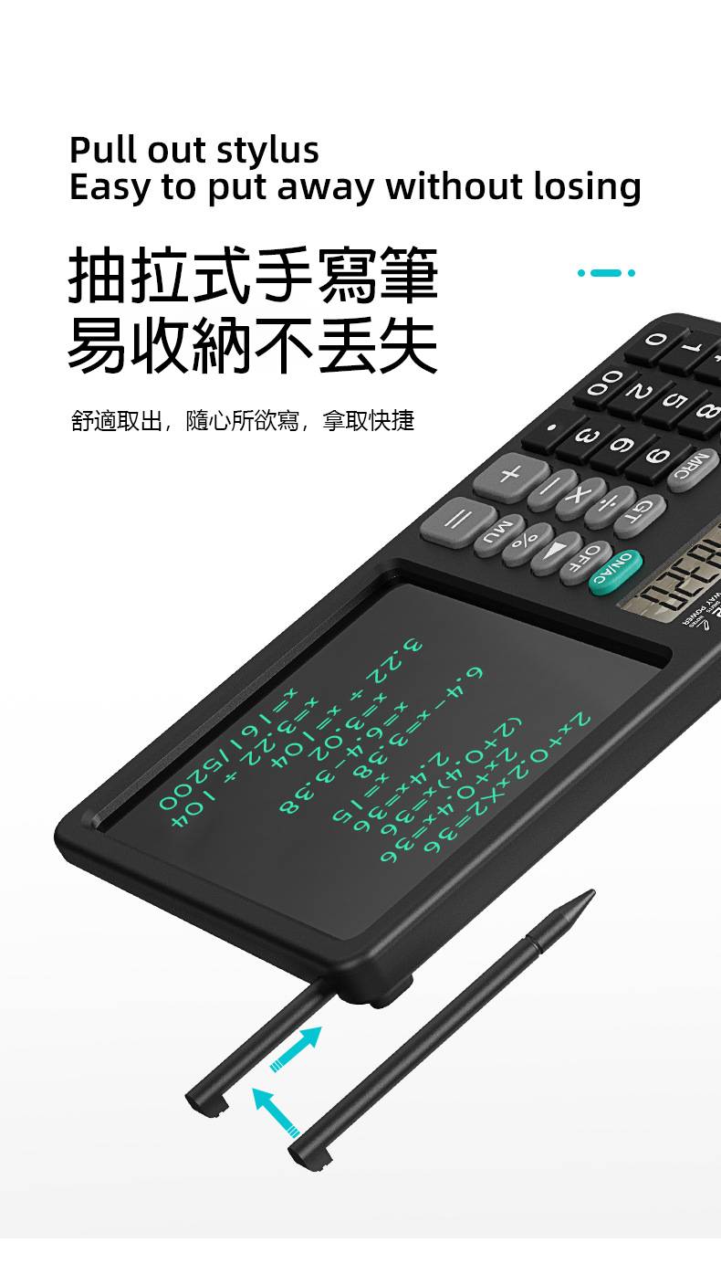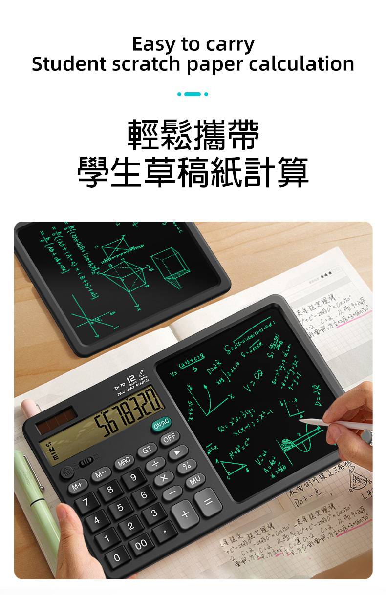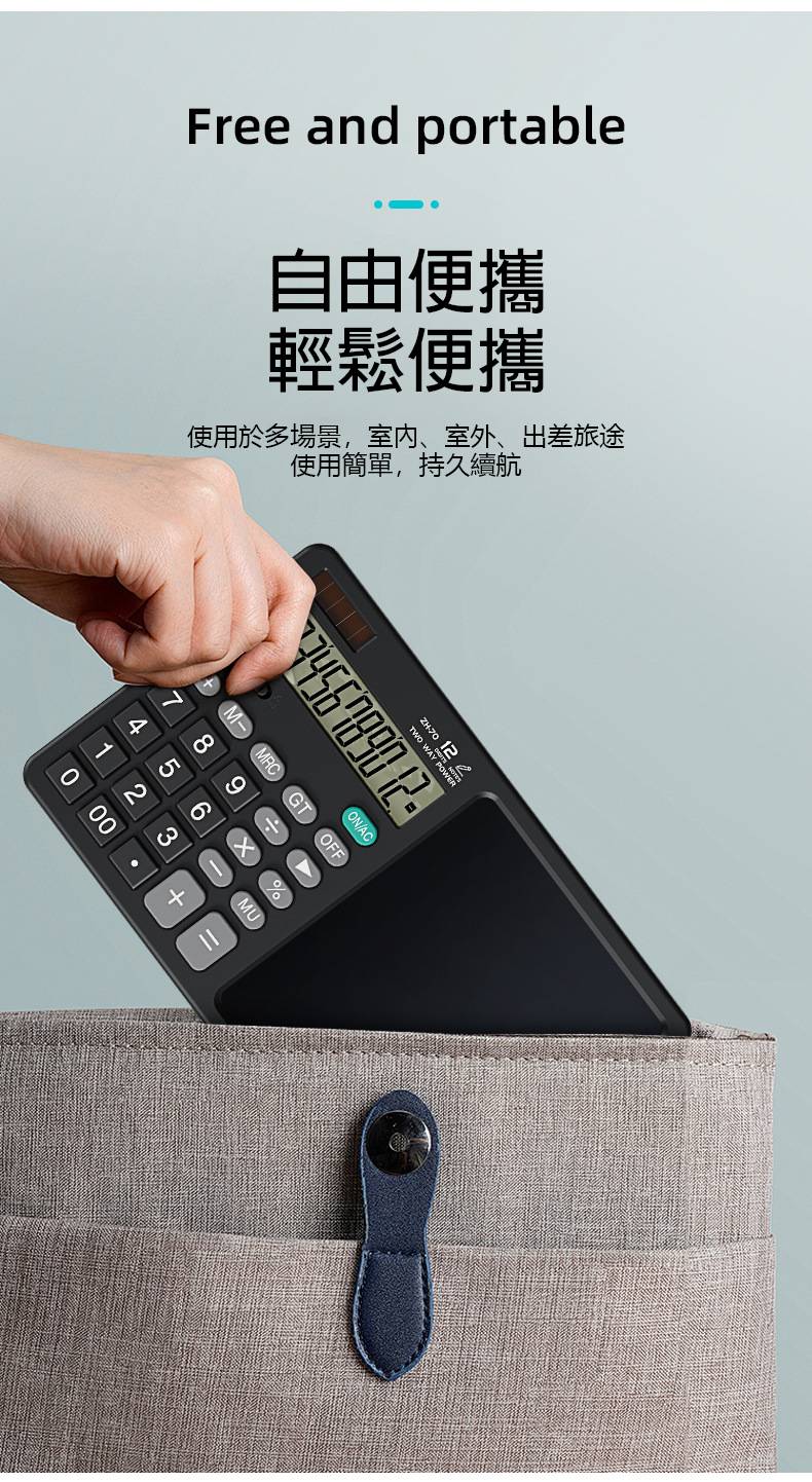 【手寫板計算機】桌面太亂還老找不到紙?換這款手寫板計算機!一鍵清除即時紀錄不殘留,千分位分隔更好讀;太陽能充電+電池備用,長時間運算也穩,記帳核對、報表出單更有效率!