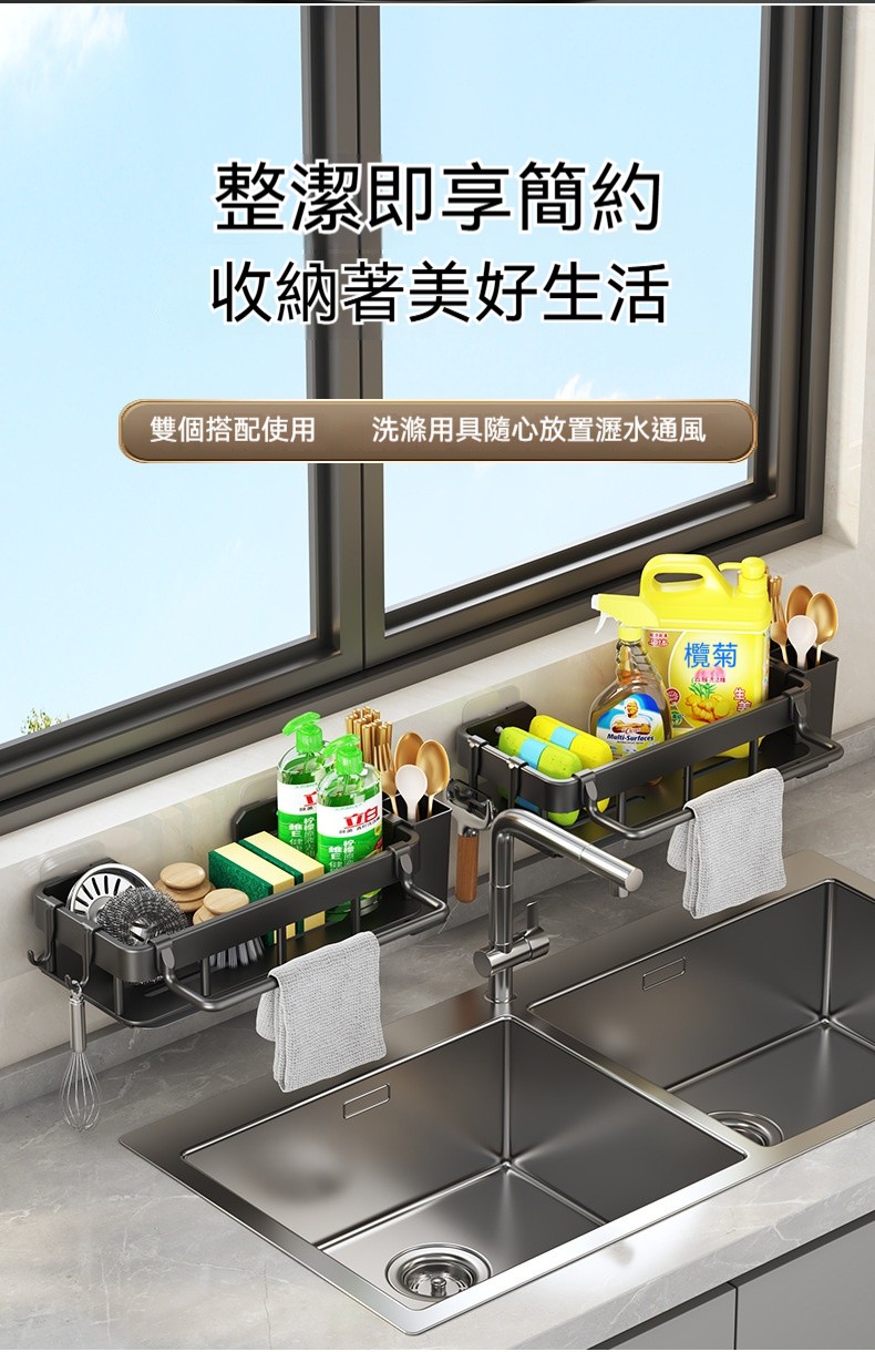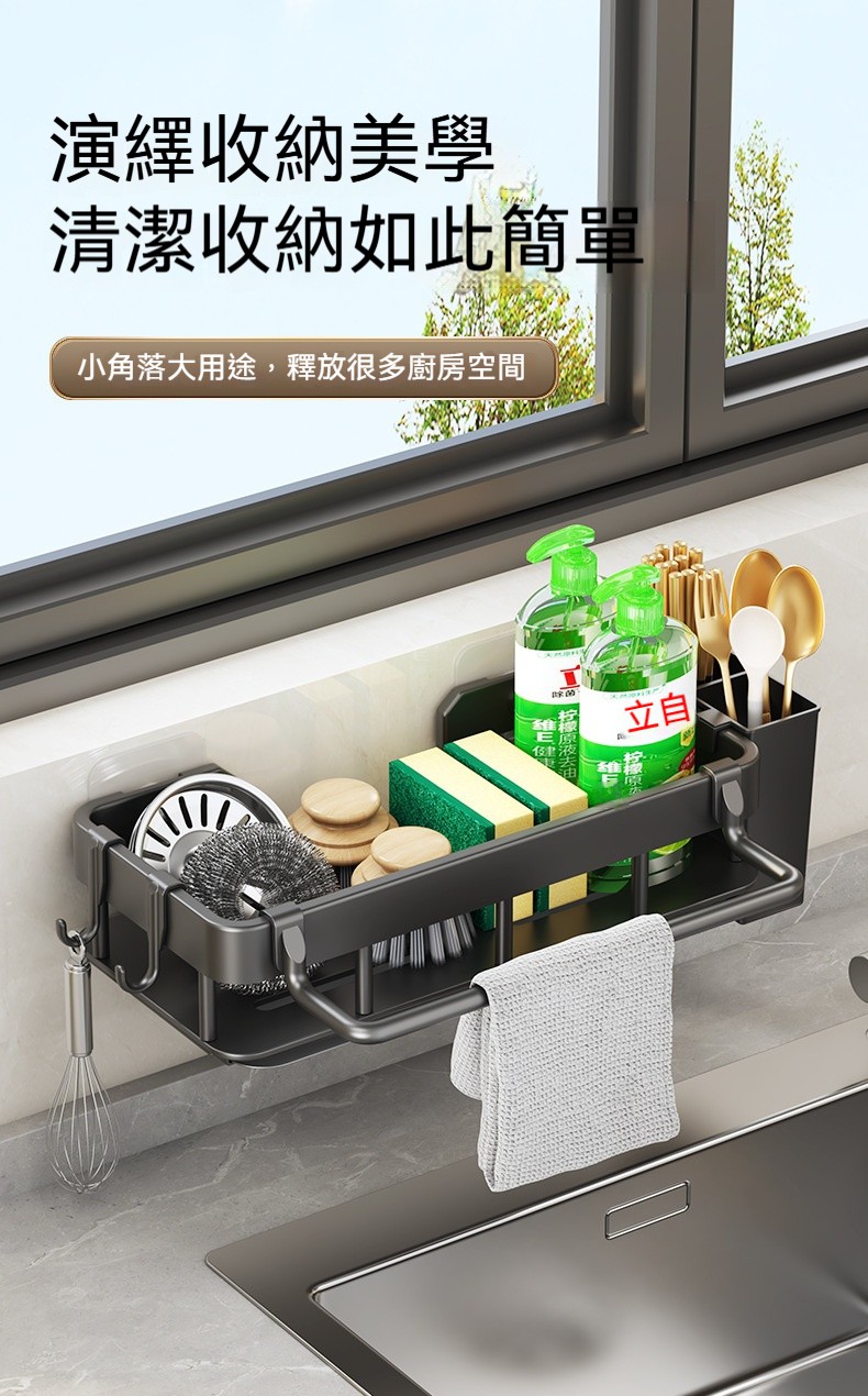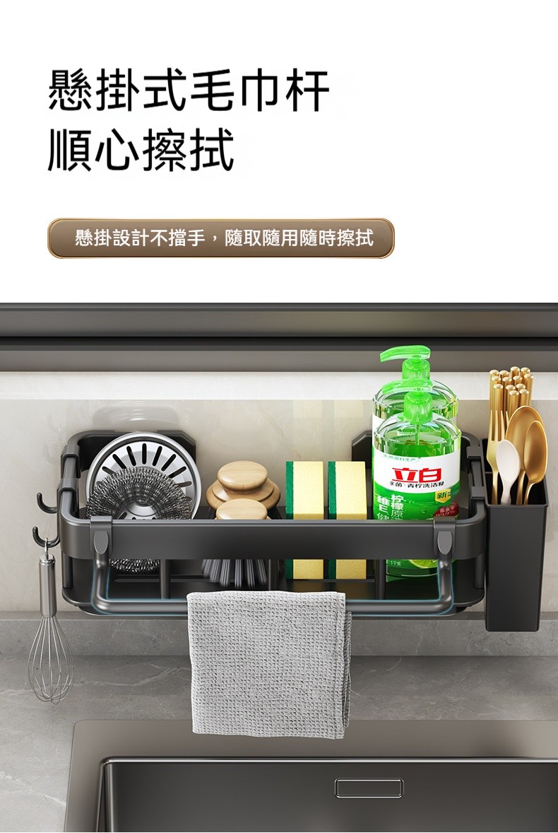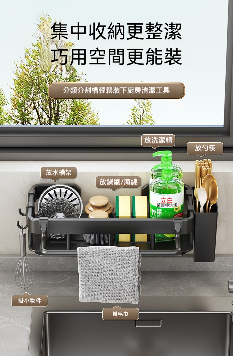 【多功能壁掛瀝水架】✨可拆式瀝水盤、免打孔安裝、分區收納設計,讓清潔工具各就各位,水槽周邊從此乾爽整潔!✨