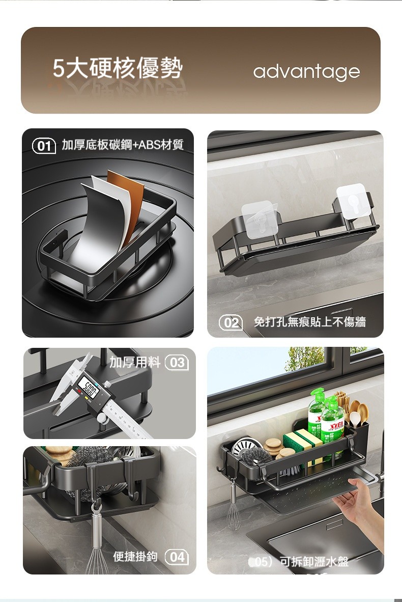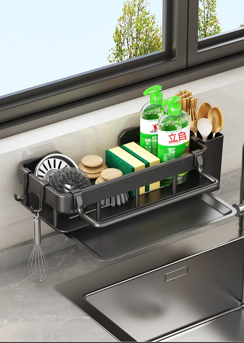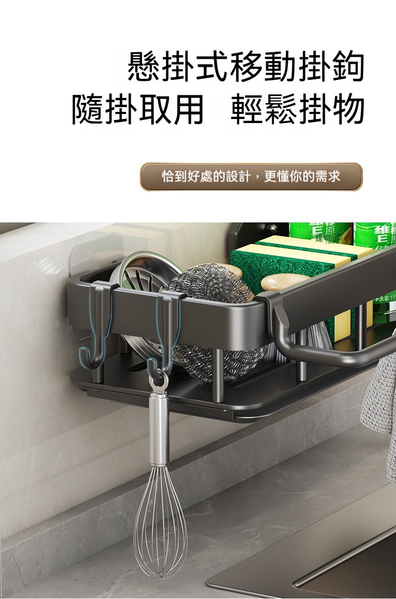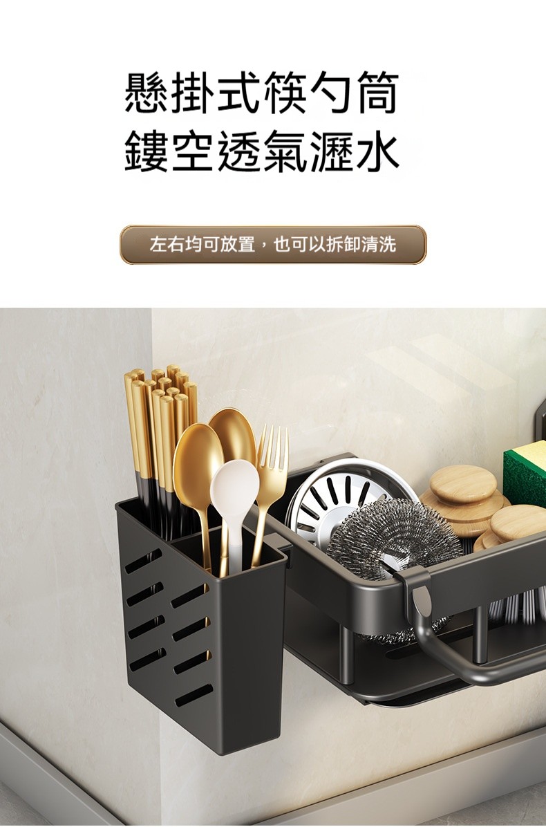 【多功能壁掛瀝水架】✨可拆式瀝水盤、免打孔安裝、分區收納設計,讓清潔工具各就各位,水槽周邊從此乾爽整潔!✨