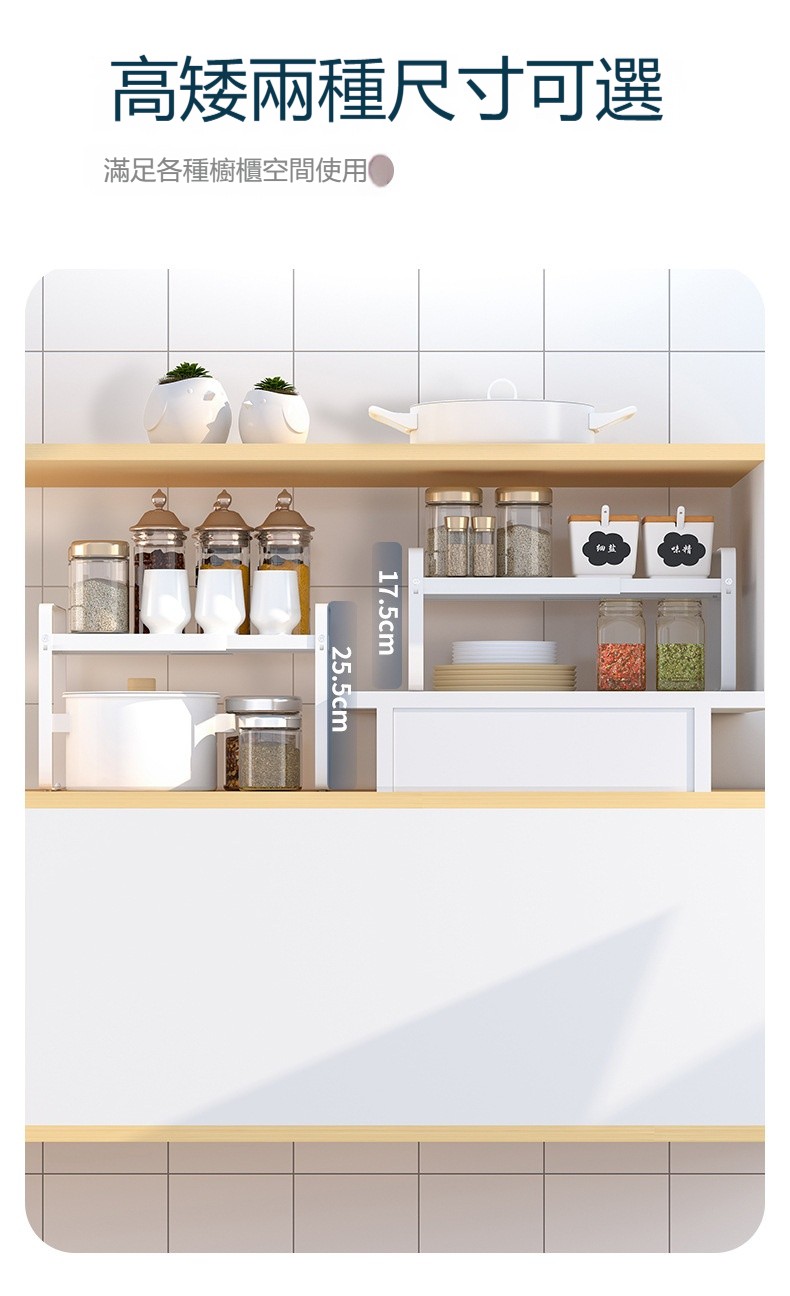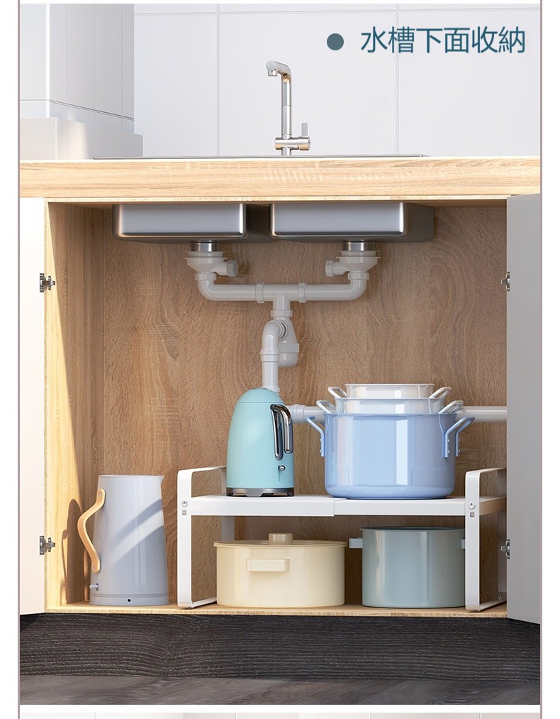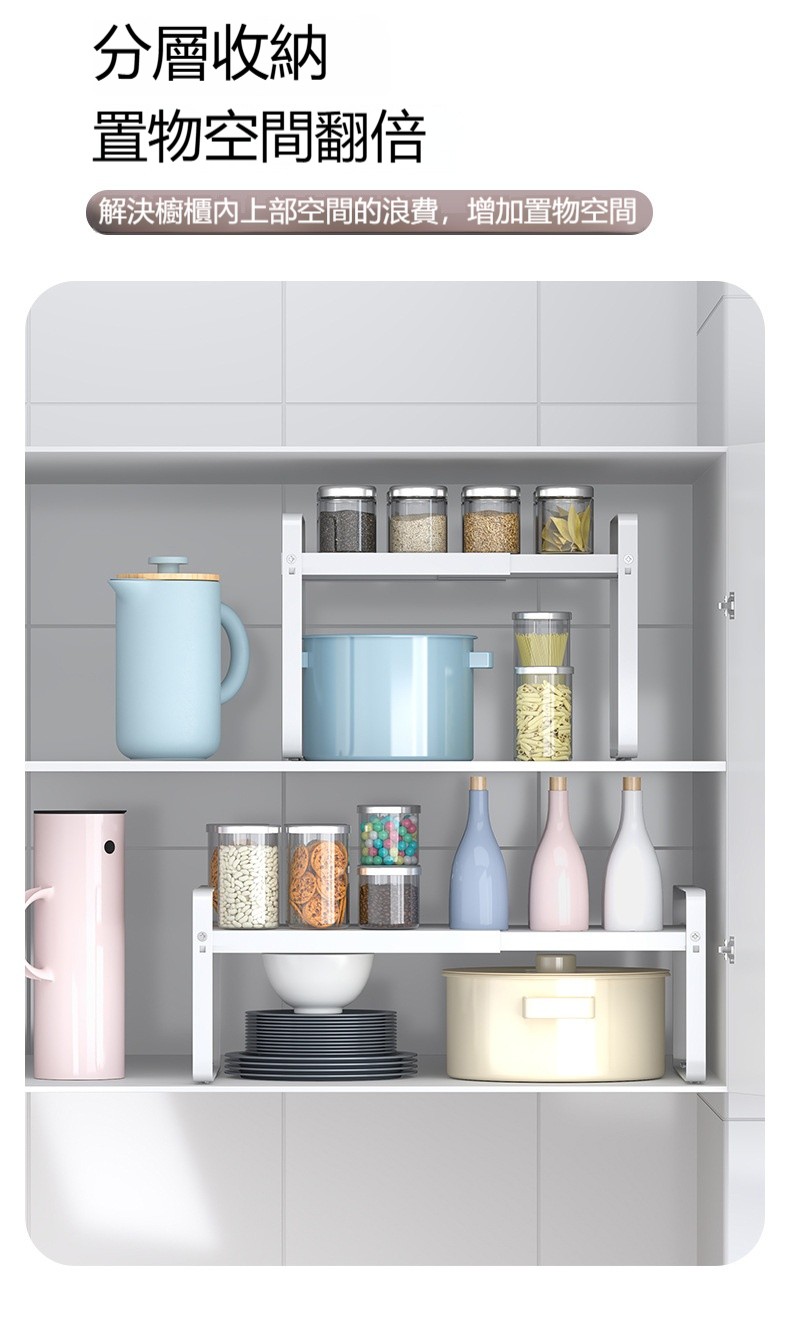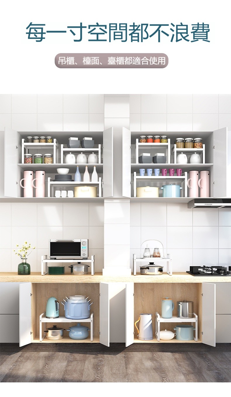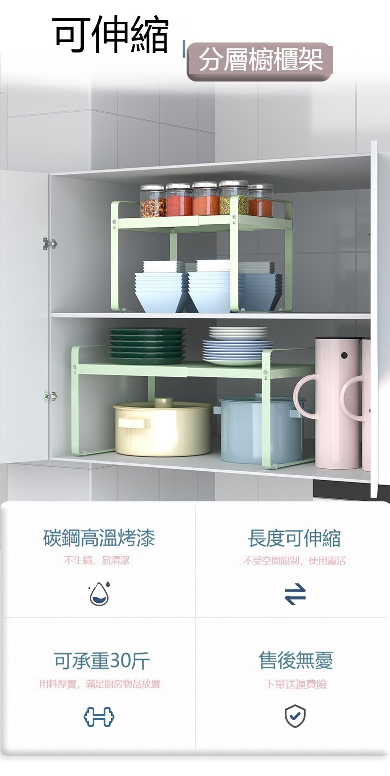 【伸縮櫥櫃分層架】 自由調長・30斤強承重・高碳鋼烤漆|讓櫃內空間翻倍的收納魔術✨